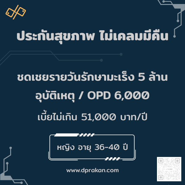 ประกันสุขภาพ ไม่เคลมมีคืน แผนนี้รวม OPD, IPD, อุบัติเหตุ และเงินรักษาโรคมะเร็งทุกระยะ วงเงิน 5 ล้านบาทไว้ในฉบับเดียว