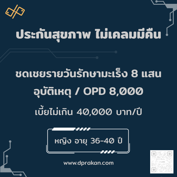 Homeประกันทั้งหมดประกันสุขภาพประกันสุขภาพ ไม่เคลมมีคืน | OPD + อุบัติเหตุ8000 | มะเร็ง 8 แสน | ญ 36–40 ปี | AIA รหัส : 01F36MD01A0109
